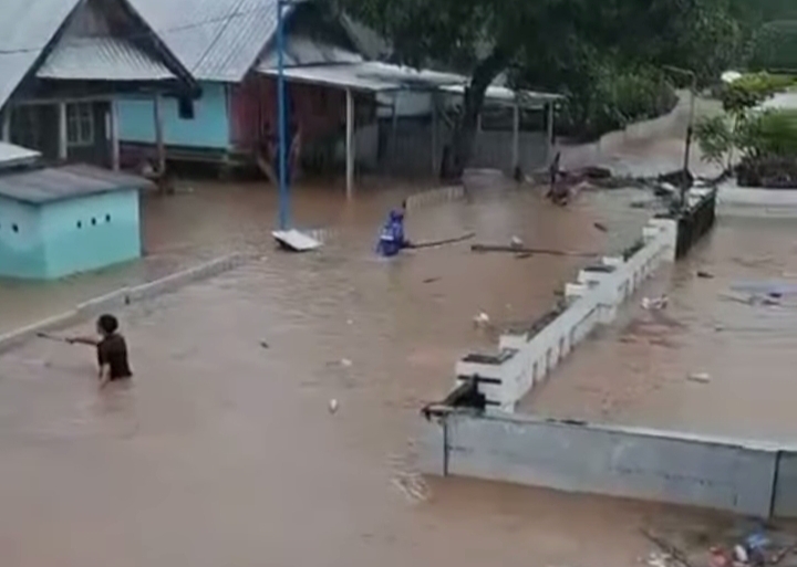 Sementara itu, di Kecamatan Jereweh dan Brang Ene, banjir yang berasal dari luapan air sungai akibat debit hujan tinggi masih terus menggenangi pemukiman warga.