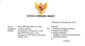 SUMBAWA BARAT – Bupati Kabupaten Sumbawa Barat (KSB), Dr Ir H W Musyafirin, MM telah menindaklanjuti istruksinya untuk semua Organisasi Perangkat Daerah
